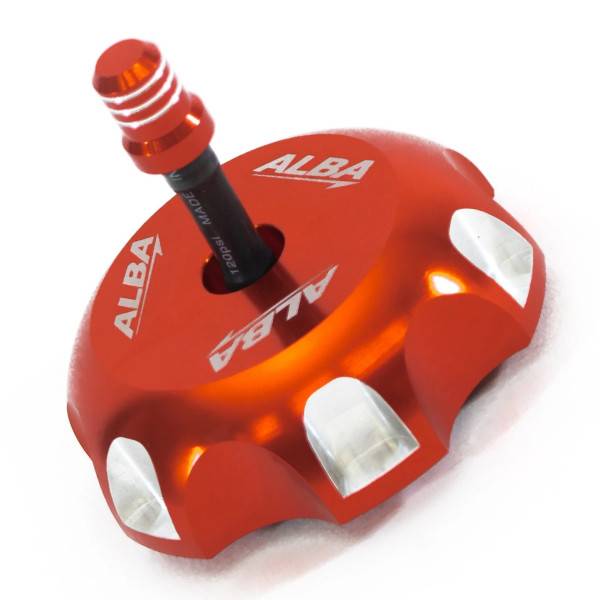 Made by Team Alba Racing this is a top quality CNC machined billet aluminum gas cap. The colors are bright and have a shiny anodized finish. It includes a breather with a check valve so it won't leak in case of a rollover. It includes the rubber gasket which provides the seal between the cap and the tank..