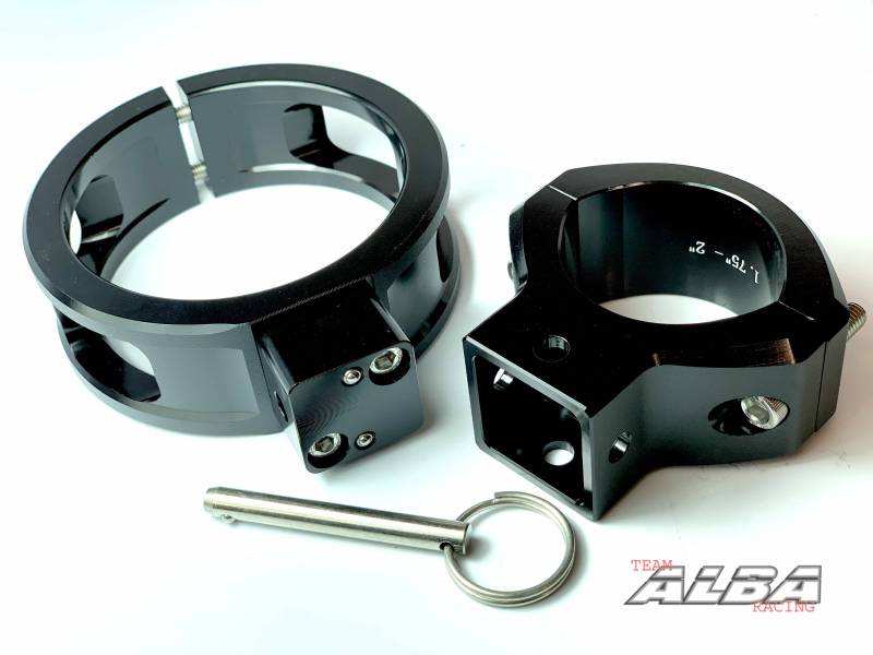 Every SXS should have a Fire Extinguisher that is easy to access, and this is the ultimate mount for the job! It offers single pin deployment for quick and easy use on the trail or track! Made from 6061 Billet aluminum that is CNC machined then hard anodized they are built to stand the test of time. They use two spring loaded anti-vibration balls so the release pin is under tension when installed. This not only gets rid of the annoying "chatter" or "play" that is found normally in standard mounts, it also applies tension on the pin making it next to impossible to vibrate out. It also has 2 set pin positions so it can be mounted vertically or horizontally and works with cages that are 1.75" to 2.00" in diameter.