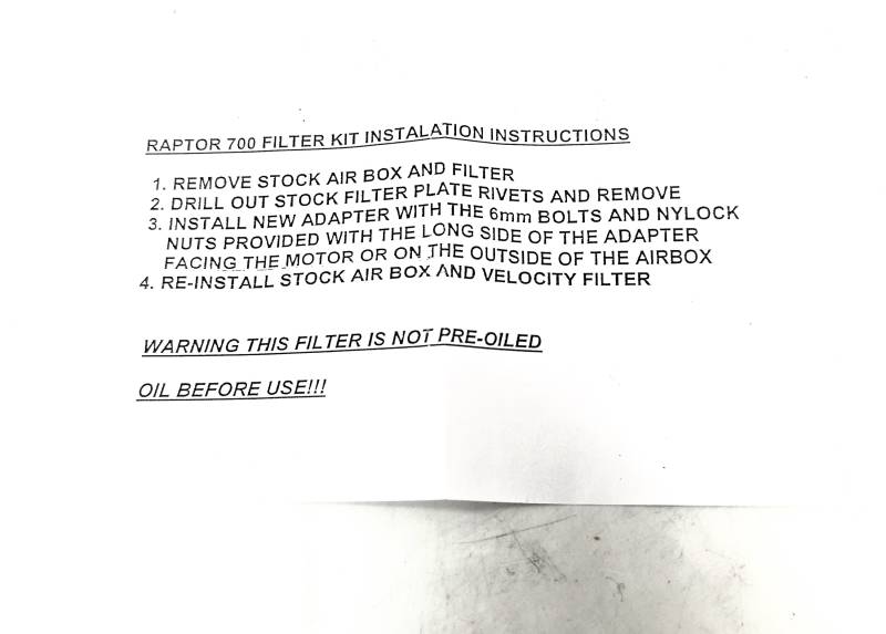 Velocity Raptor 700 Air Filter Kit